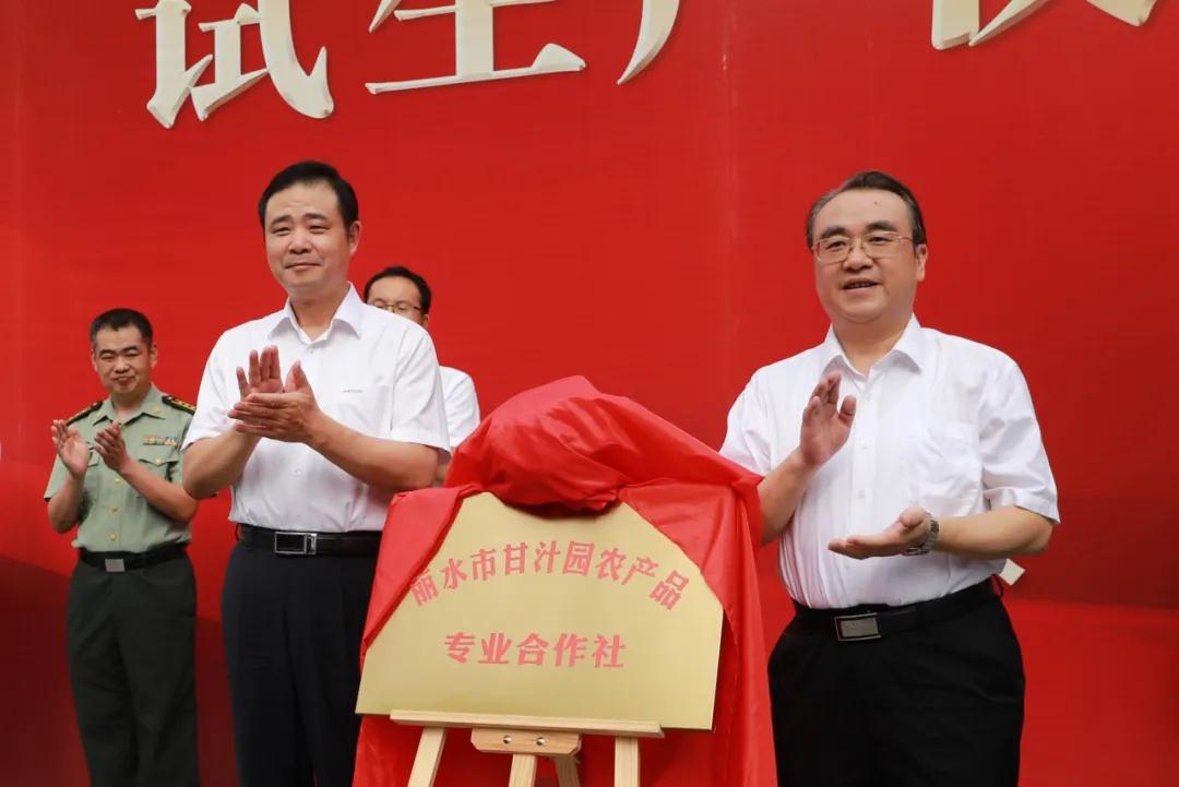 儀式上,陳宗年致辭,并與徐光文共同為“麗水市甘汁園農(nóng)產(chǎn)品專業(yè)合作社”揭牌,徐光文宣布蓮都區(qū)仙渡鄉(xiāng)甘薯種植及淀粉加工項(xiàng)目試生產(chǎn)啟動。
